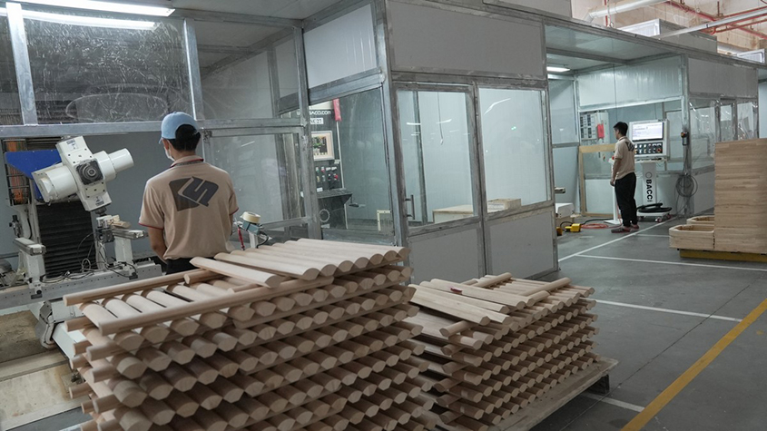 • 凯胜家具引进了欧洲进口的自动化实木备料优选系统,有效提高了实木备料的工作效率、出材率及安全性,为高效生产奠定了基础。